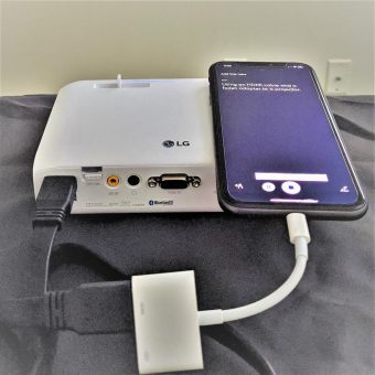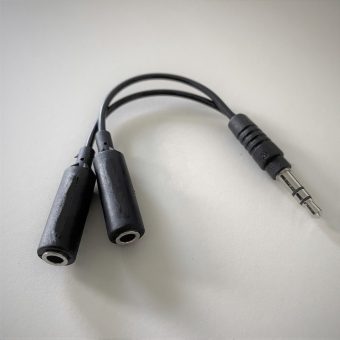 In the photo above, I used a splitter because I needed audio for more than one use. I plugged in a transmitter (a streamer) for audio straight to my hearing aids. In addition, I plugged in an external speaker for another person to listen in. That external speaker also provided audio for a speech-to-text app listening in on my mobile phone. Some people might call this “kludgy” and I’m okay with that.